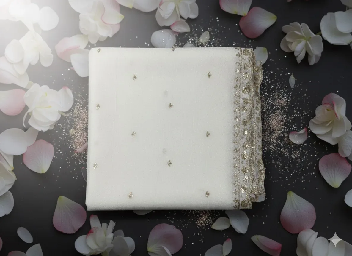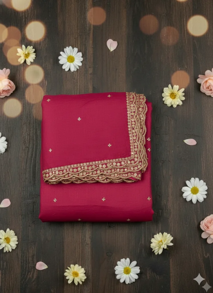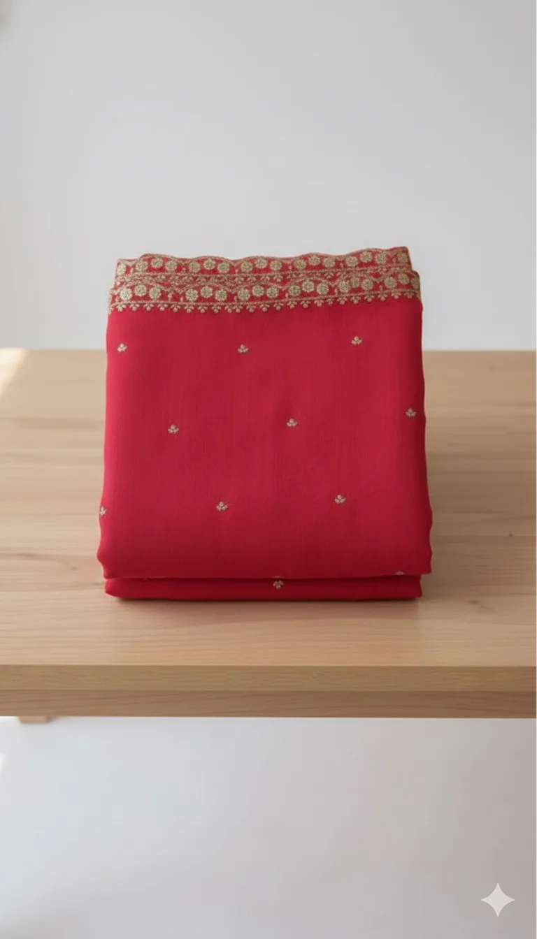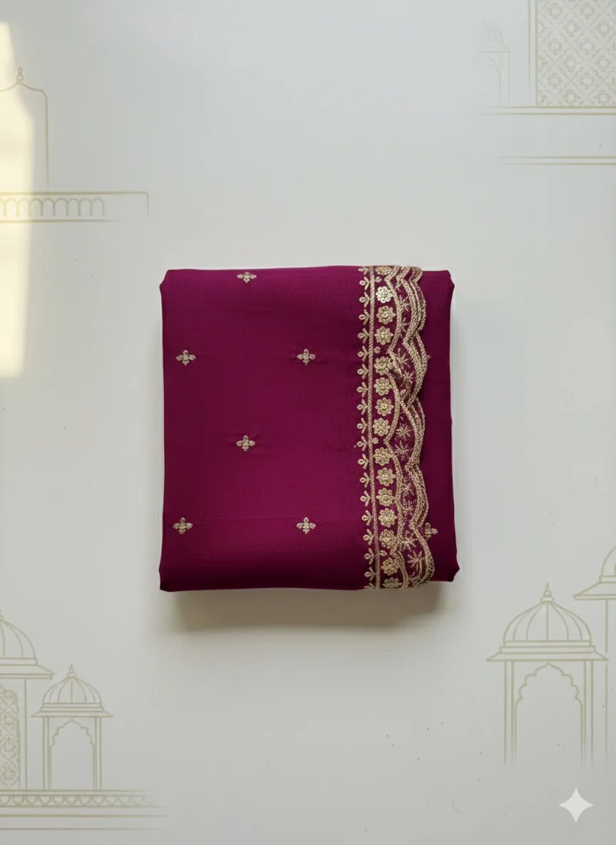 Deep Maroon Scallop Border Sequin Chunari (Available in 7 colors)