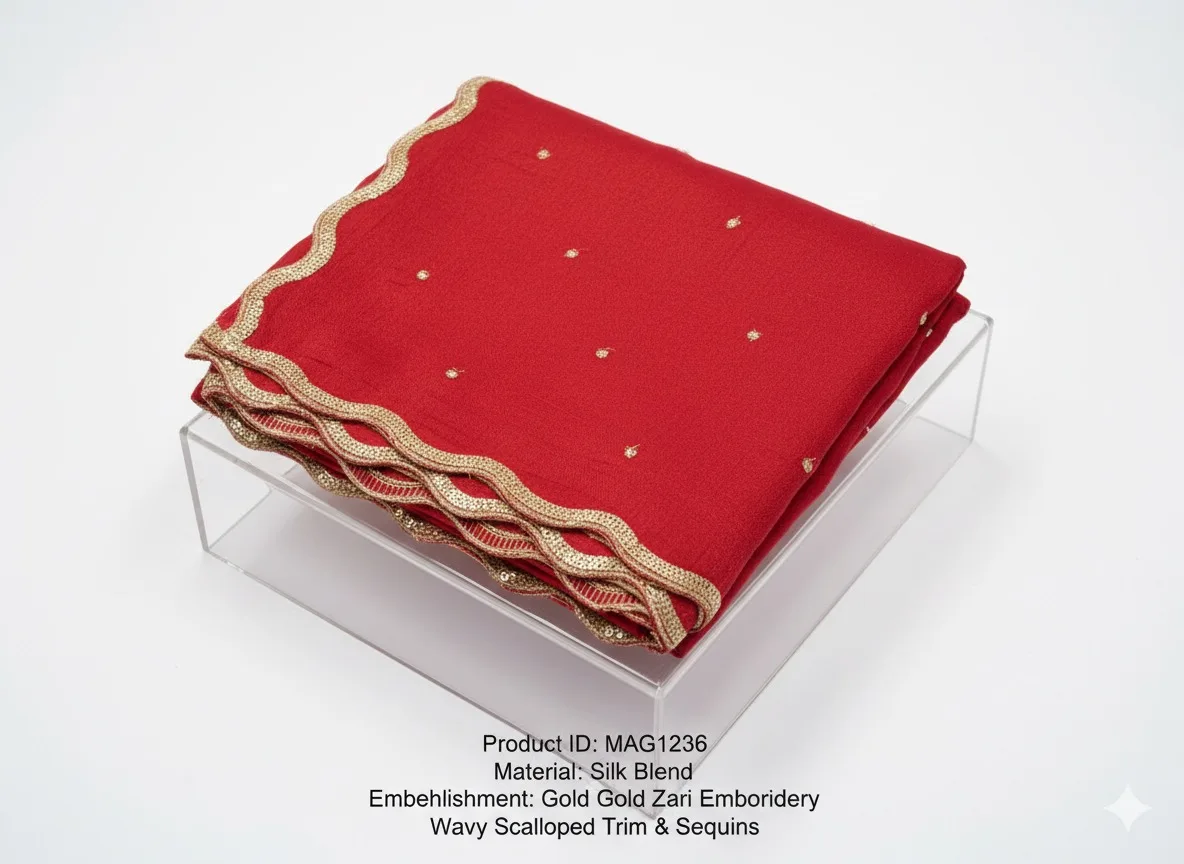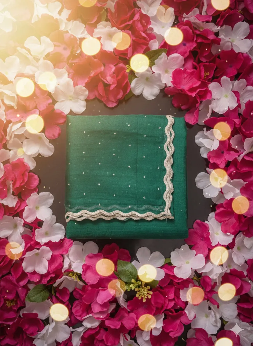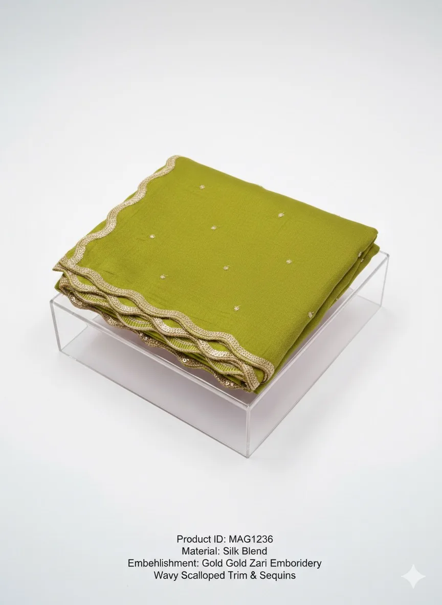 Emerald Green Scallop Border Sequin Chunari (Available in 7 colors)