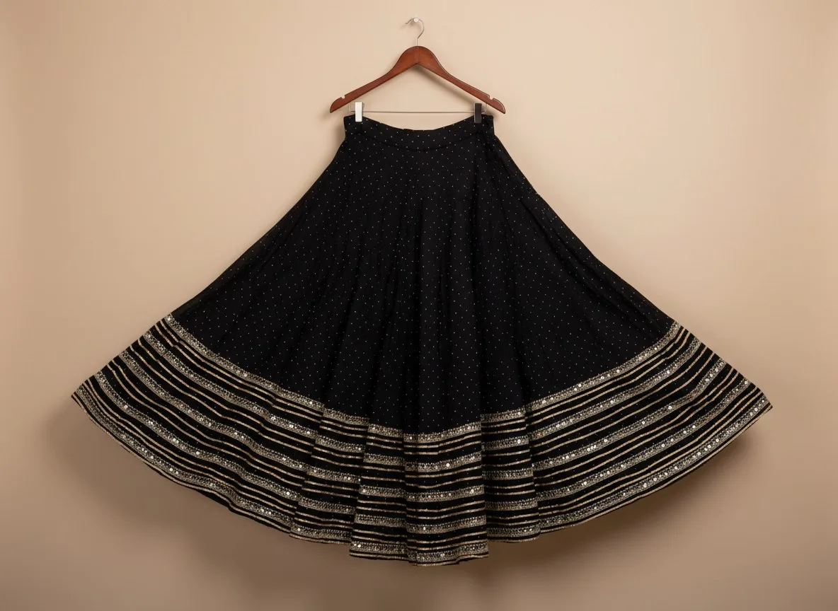 Black Chandrakala zari sequins Flared Skirt (Available in 4 colors)